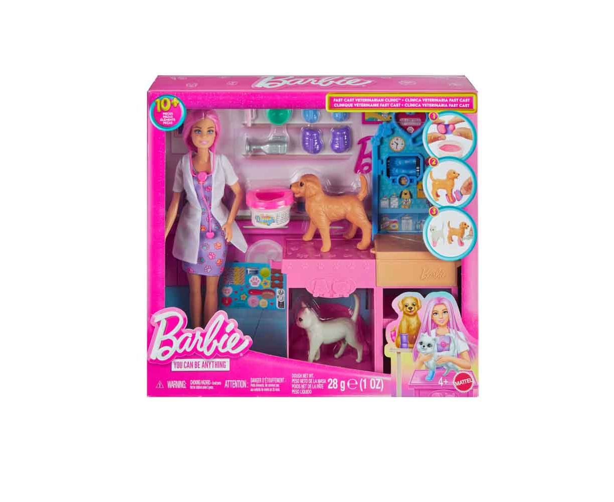 Η φροντίδα γίνεται παιχνίδι, η αγάπη γίνεται ιστορία, και κάθε μικρός κτηνίατρος βρίσκει εδώ τον δικό του κόσμο εξερεύνησης και φαντασίας. Με το Barbie Ιατρείο Για Ζωάκια, τα παιδιά ζουν μια αυθεντική εμπειρία κτηνιατρικής γεμάτη δημιουργικότητα και ρεαλιστικές λειτουργίες που ενθαρρύνουν τη φροντίδα και το παιχνίδι ρόλων. Η Barbie είναι έτοιμη για κάθε περίπτωση έκτακτης ανάγκης με τα χαρακτηριστικά ροζ μαλλιά της και την επαγγελματική στολή κτηνιάτρου. Στην κλινική της την περιμένουν δύο αξιολάτρευτα κατοικίδια που χρειάζονται φροντίδα και αγάπη. Το εξεταστικό τραπέζι και τα κτηνιατρικά αξεσουάρ δίνουν στα παιδιά όλα όσα χρειάζονται για να φτιάξουν τις δικές τους ιστορίες θεραπείας. Με τον ειδικό μηχανισμό κατασκευής γύψου, μπορούν να δημιουργήσουν ρεαλιστικά εκμαγεία για τα “τραυματισμένα” ποδαράκια των ζώων, ενώ η συσκευή επιδέσμων τους επιτρέπει να ντύνουν με προσοχή κάθε μικρό τραυματισμό. Το σετ δεν είναι απλώς παιχνίδι – είναι ένα εργαστήρι φαντασίας που διδάσκει τη φροντίδα, την ενσυναίσθηση και την αξία της βοήθειας προς τα ζώα. Κάθε σενάριο παιχνιδιού γίνεται μια ιστορία αγάπης και προστασίας, καθώς τα παιδιά μαθαίνουν να αναλαμβάνουν τον ρόλο του φροντιστικού επαγγελματία.