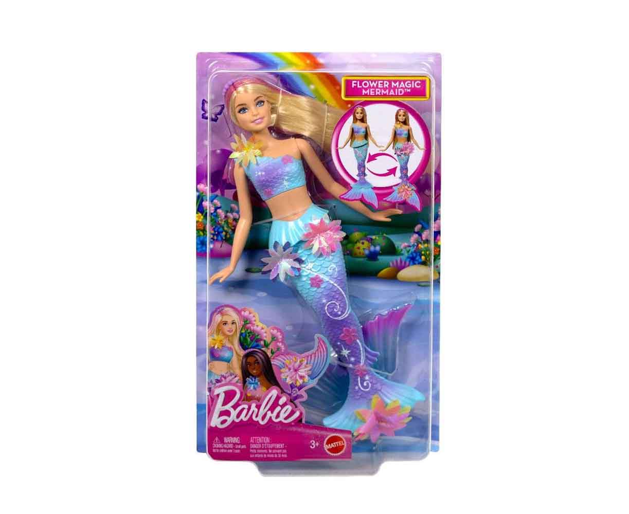 Διασκεδάστε με την κούκλα Barbie Flower Magic Mermaid! Σύρετε το μοχλό στην πλάτη της για να δείτε λουλούδια να «ανθίζουν» μαγικά από το μπούστο της μέχρι την ουρά της, ξανά και ξανά! Με τα ιριδίζοντα λουλούδια της, τα πτερύγια της σε χρώμα ombre και το αξεσουάρ headband με μαργαριτάρια στα υπέροχα μακριά ξανθά μαλλιά της με ροζ ανταύγειες, αυτή η κούκλα Barbie γοργόνα είναι τόσο μαγευτική. Η κούκλα δεν μπορεί να σταθεί ή να κολυμπήσει μόνη της. Τα χρώματα και οι διακοσμήσεις ενδέχεται να διαφέρουν.