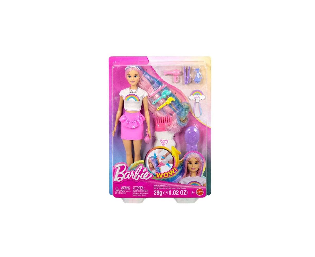 Οι κούκλες Barbie Rainbow Sparkle Hair εμπνέουν τη φαντασία και τη δημιουργικότητα μέσα από παιχνίδι styling και αφήγησης, χάρη στα μακριά, φανταστικά μαλλιά τους και τα 12 αξεσουάρ διαμόρφωσης. Τα παιδιά μπορούν να προσθέσουν λάμψη στα χτενίσματα με τη χτένα με γκλίτερ και να ολοκληρώσουν κάθε πολύχρωμο look με κλιπ, εργαλεία styling και επιπλέον αξεσουάρ μαλλιών. Το παιχνίδι ενισχύει την έκφραση, τη δημιουργικότητα και τις ατελείωτες ιστορίες ρόλων. Κάθε κούκλα πωλείται ξεχωριστά και ανάλογα με τη διαθεσιμότητα. Η κούκλα δεν μπορεί να σταθεί όρθια από μόνη της. Τα χρώματα και τα σχέδια μπορεί να διαφέρουν.