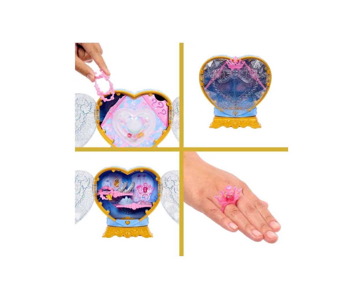 Ανακαλύψτε τον μαγικό κόσμο των Πριγκιπισσών της Disney με την κούκλα Σταχτοπούτα και τα αξεσουάρ της! Η διασκέδαση ξεκινά τη στιγμή που τα παιδιά ξεκλειδώνουν την καρδιά στο πάνω μέρος της συσκευασίας αποκαλύπτοντας μια πανέμορφη κούκλα Σταχτοπούτα και αξεσουάρ-έκπληξη εμπνευσμένα από την αγαπημένη ταινία της Disney.Τα παιδιά μπορούν να στολίσουν την κούκλα τους με πετράδια και στη συνέχεια να συνδέσουν την καρδιά στη βάση για να δημιουργήσουν ένα κουτί για την αποθήκευση των αξεσουάρ. Ιδανικό για τους θαυμαστές της Disney που αγαπούν τα παιχνίδια μόδας και τις διασκεδαστικές ιστορίες! Η κούκλα δεν μπορεί να σταθεί μόνη της. Τα χρώματα και οι διακοσμήσεις μπορεί να διαφέρουν.