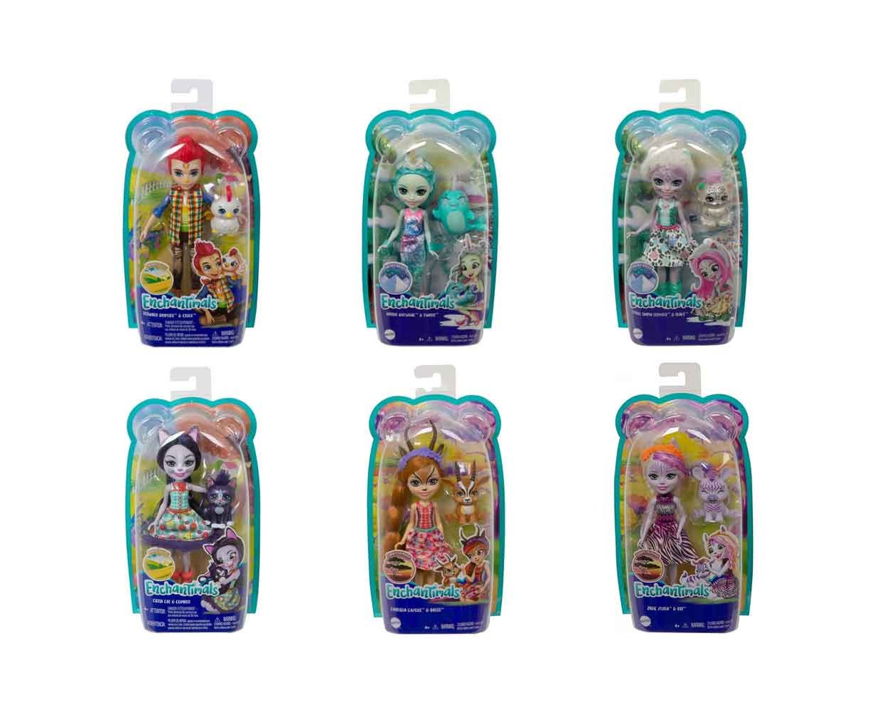Η παρέα των Enchantimals™, μεγαλώνει με νέους φίλους και καινούρια ζωάκια φιλαράκια. Η κάθε κούκλα έχει και το αντίστοιχο μοναδικό χνουδωτό ζωάκι - φιλαράκι της, με αληθινά μακριά μαλλιά και μοντέρνα ενδυμασία! Η Κούκλα και το ζωάκι φιλαράκι έχουν γουνίτσα που ταιριάζει μεταξύ τους.