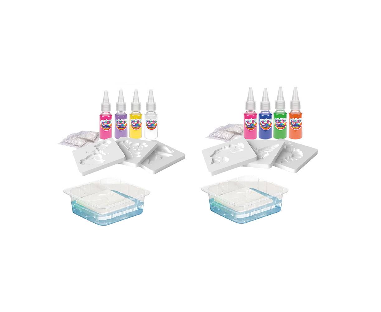 Βάλε ένα ή και περισσότερα από τα χρωματιστά τζελ στο καλούπι και βούτηξέ το στο ειδικό νερό. Μετά από λίγα δευτερόλεπτα κούνησε ελαφρώς το καλούπι δεξιά-αριστερά και θα δεις την δημιουργία σου να ζωντανεύει. Άφησέ το λίγα δευτερόλεπτα παραπάνω για να στερεοποιηθεί ή ζούληξέ το στη στιγμή! Σημαντικό Tip : Η φαντασία δεν έχει όρια!