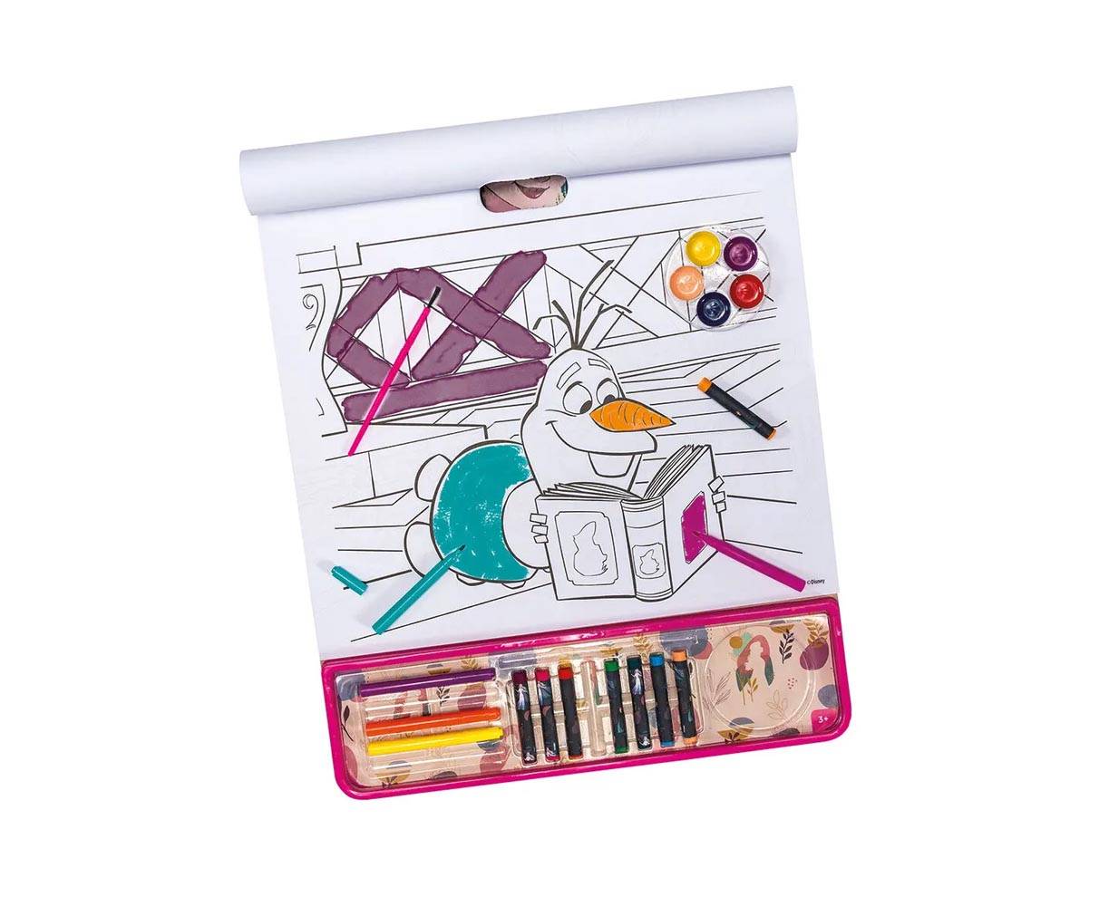 Ένα σετ με όλα όσο χρειάζεσαι για να γνωρίσεις τον φανταστικό κόσμο των αγαπημένων σου ηρωίδων Frozen, Έλσα και Αννα, δίνοντάς τους ζωή μέσα από τις ζωγραφιές σου. Διάλεξε ένα χρώμα από τις κηρομπογιές ή ανάμιξε τα χρώματα νερομπογιάς που θέλεις και χρωμάτισε διάφορες σκηνές της ζωής της Έλσας και της Αννας, από τότε που ήταν μικρές αλλά και όταν μεγάλωσαν, παρέα με τους φίλους τους Όλαφ και Κριστόφ.