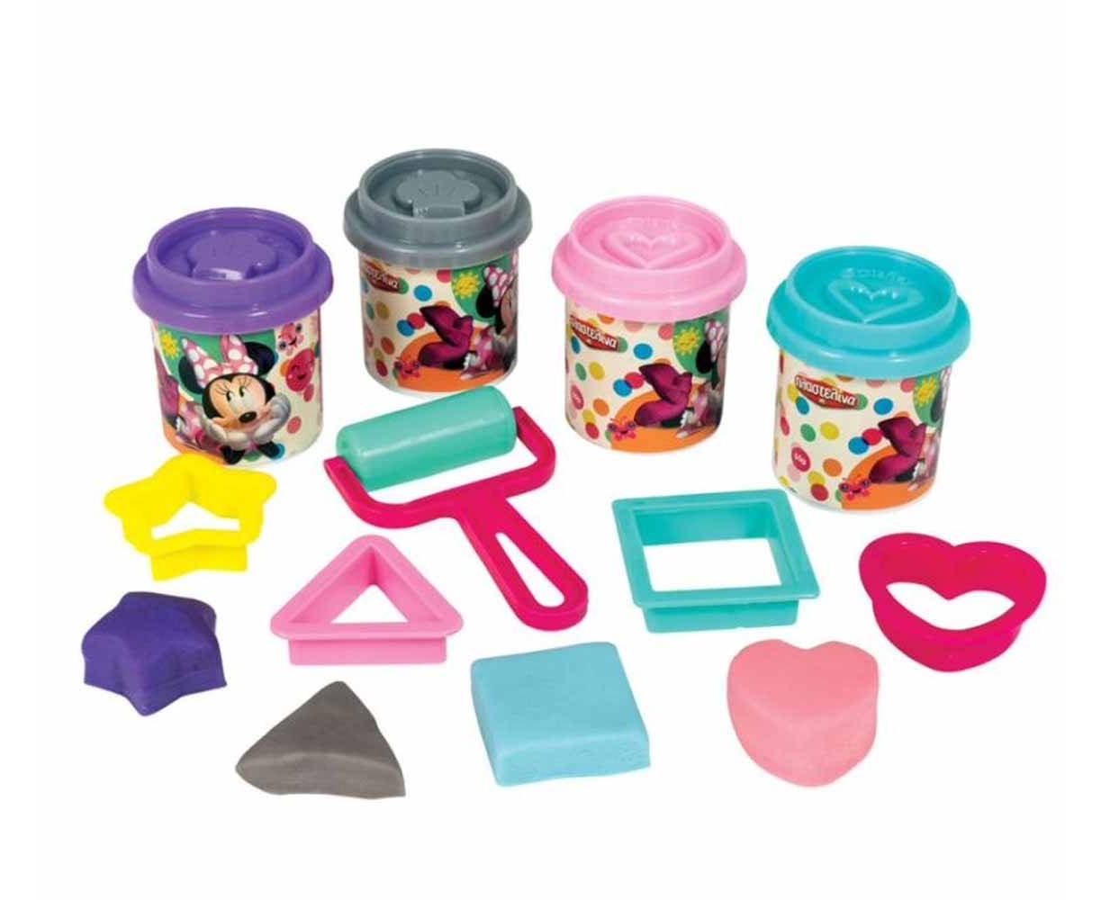 Σετ πλαστελίνης σε τσάντα πλάτης Minnie, για να μπορεί το παιδί να μεταφέρει παντού τις πλαστελίνες του παρέα με την αγαπημένη του Minnie. Περιλαμβάνει 4 βαζάκια πλαστελίνης 50γρ το καθένα, καπάκια καλουπάκια, 4 καλουπάκια (κόφτες) και 1 μικρό πλάστη.