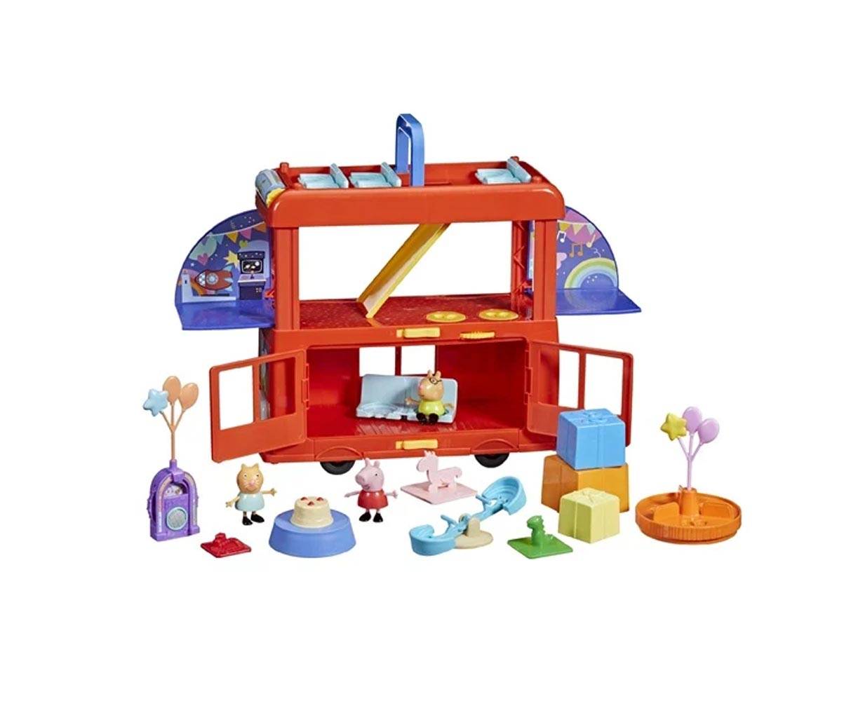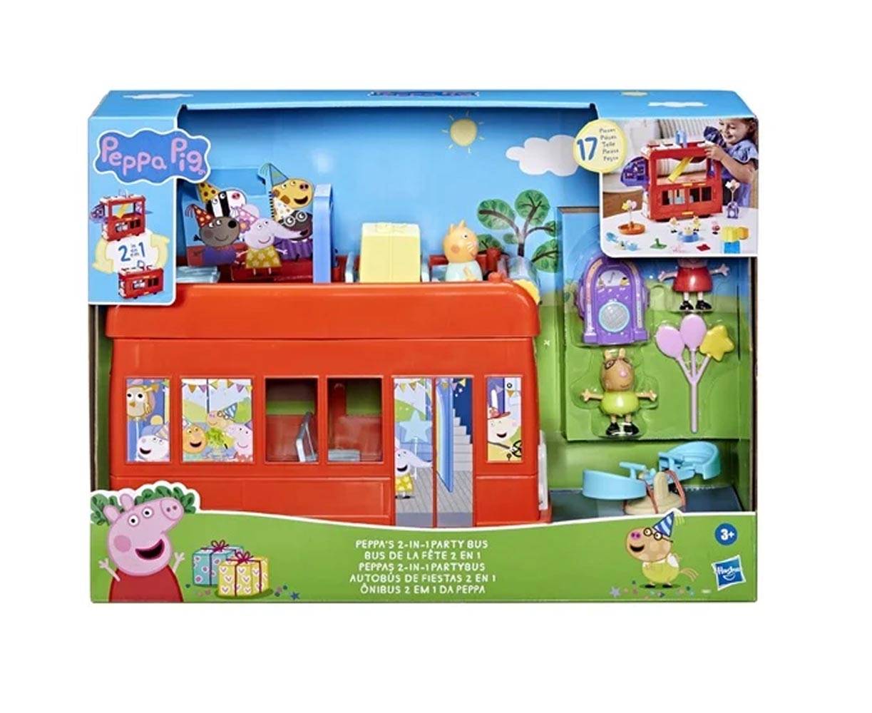 Μπιπ μπιπ! Έρχεται το λεωφορείο 2 σε 1 της Peppa – ένα σετ παιχνιδιού κατάλληλο για διοργάνωση πάρτυ και μαγική μεταμόρφωση! Η Peppa και ο Pedro είναι έτοιμοι να κάνουν πάρτυ και να γιορτάσουν τα γενέθλια της Candy Cat!