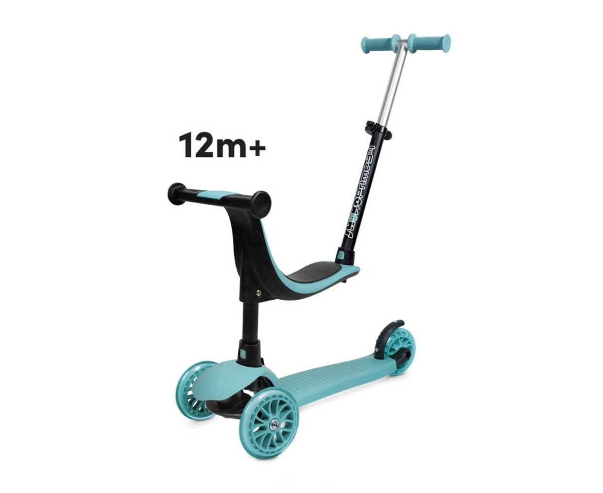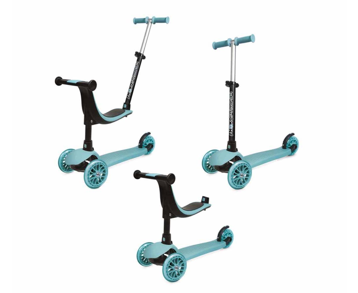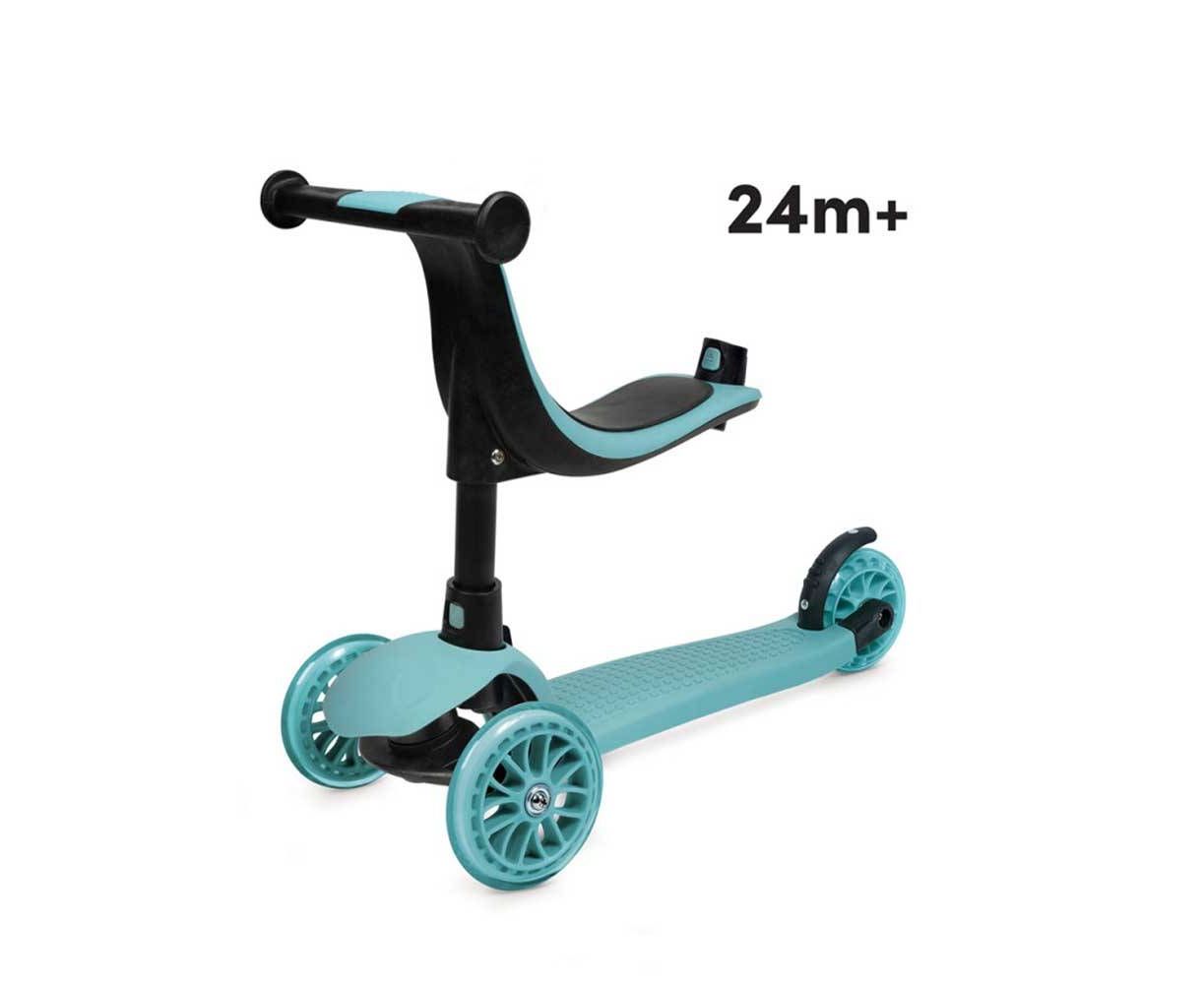 Λειτουργία scooter: Το παιδί έχοντας πλέον αναπτύξει την ισορροπία του και νιώθοντας πια σίγουρο για τις οδικές του δεξιότητες, είναι έτοιμο να χρησιμοποιήσει το scooter με πλήρη αυτονομία και να διασκεδάσει κάνοντας ατελείωτες βόλτες, με άνεση, ασφάλεια και στυλ. Με μια εύκολη αναπροσαρμογή, αφαιρώντας την εργονομική θέση και προσαρμόζοντας το χερούλι καθοδήγησης γονέα στο μπροστινό μέρος του scooter, το πατίνι ισορροπίας μετατρέπεται σε scooter με τρεις ρόδες. Πλέον το παιδί μπορεί να μάθει να οδηγεί το scooter, να εξασκήσει τις κινητικές του δεξιότητες, την ισορροπία του αλλά και το συνολικό συντονισμό μερών του σώματός του, ώστε να μπορεί να απολαύσει τη βόλτα του με άνεση και ασφάλεια.