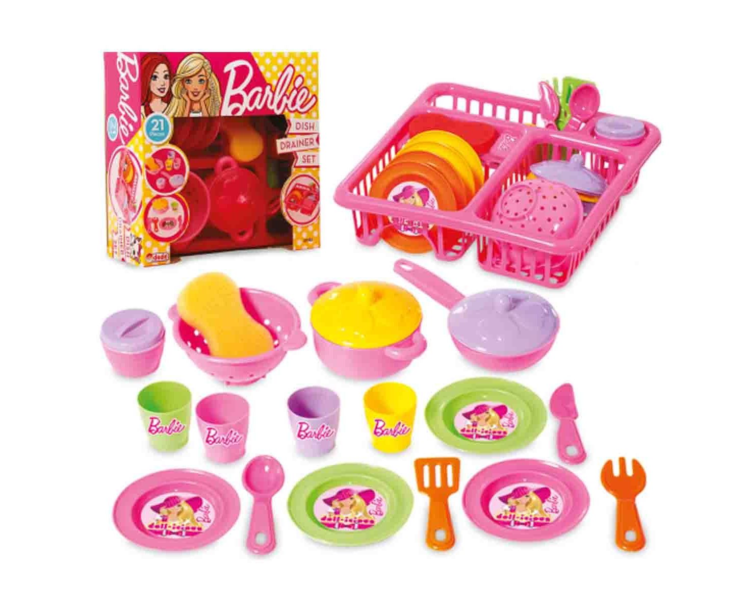 Με το σετ σερβίτσιο της Barbie μπορείς να μαγειρέψεις και να καλέσεις τις φίλες σου για φαγητό! Μόλις τελειώσετε πιάσε το σφουγγάρι, πλύνε τα πιάτα και βάλτα να στεγνώσουν στον στεγνωτήρα πιάτων. Ενθαρρύνει το παιχνίδι ρόλων, το οποίο βοηθά τα παιδιά να αναπτύξουν κοινωνικές δεξιότητες, μιμούμενα τους μεγάλους και εφευρίσκοντας ρόλους.