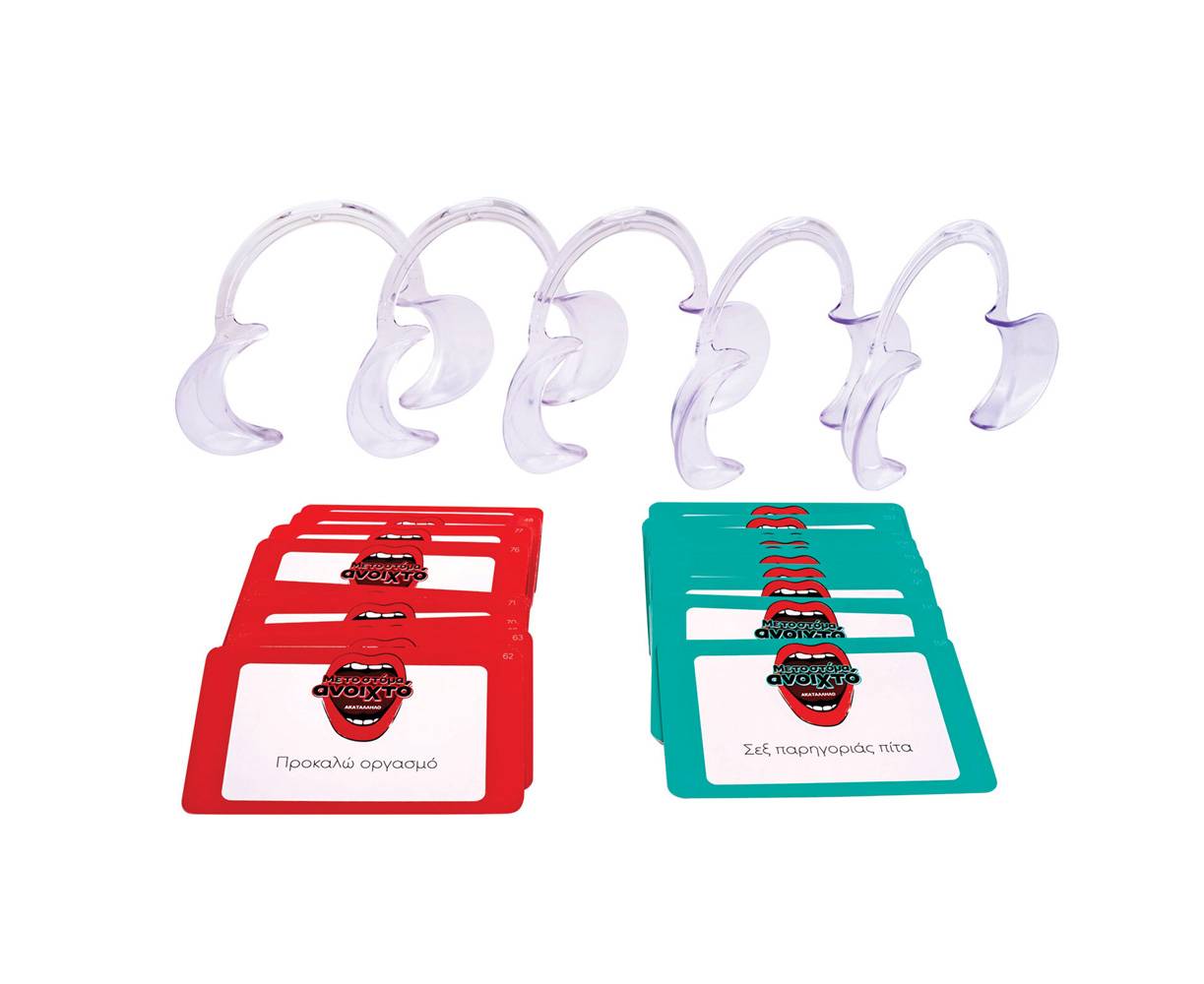 Το παιχνίδι που θα κάνει εσένα και την παρέα σου να κλάψετε από τα γέλια! Φόρεσε το ειδικό μασελάκι, τράβηξε μια κάρτα και προσπάθησε να πεις τη φράση που είναι γραμμένη στην κάρτα. Θα καταλάβει η ομάδα σου τι προσπαθείς να περιγράψεις; Ο χρόνος μετρά αντίστροφα και όλοι αναρωτιούνται τι λες. Όσες περισσότερες φράσεις μαντέψουν, τόσο πιο κοντά είστε στη νίκη!