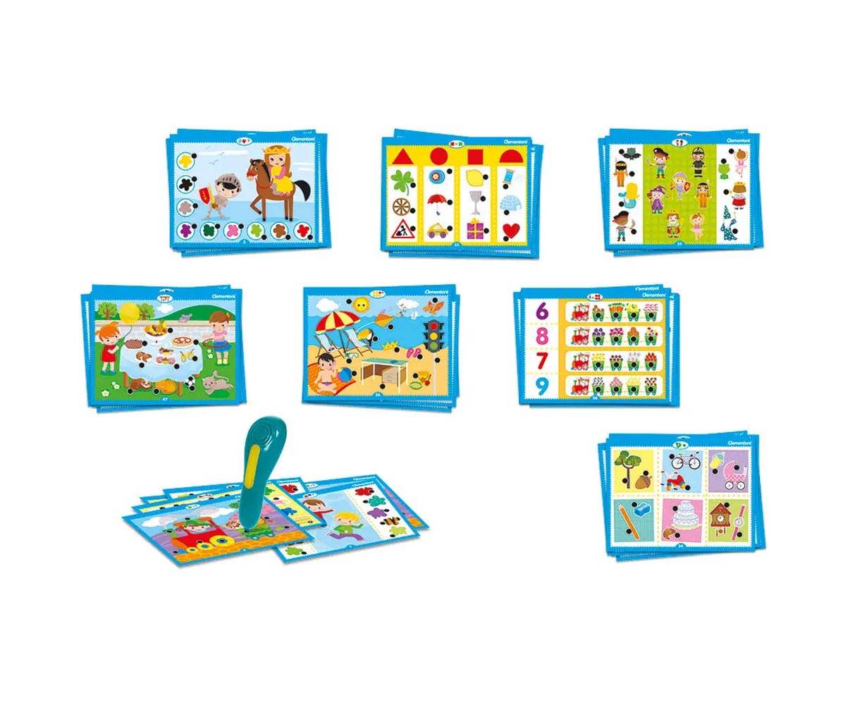 Οι 72 δραστηριότητες είναι χωρισμένες σε διάφορες κατηγορίες που εκτείνονται σε πολλούς τομείς της προσχολικής εκπαίδευσης και βοηθούν στην κατανόηση βασικών εννοιών, όπως: οι ποσότητες και τα μεγέθη, τα χρώματα και τα σχήματα, τα ζώα και το περιβάλλον, οι εποχές και οι συνήθειες κ.ά. Το στυλό που μιλάει καθοδηγεί το παιδί στο παιχνίδι και αποκαλύπτει αν οι απαντήσεις είναι σωστές ή λάθος μέσω ενός εφέ φωτισμού και με 4 διαφορετικά μηνύματα.