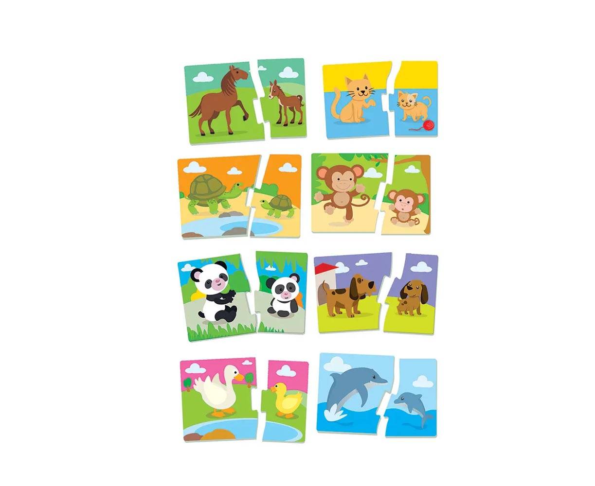 Μεγάλα πολύχρωμα παζλ που διεγείρουν τις λεπτές κινητικές δεξιότητες και την αντιληπτική ικανότητα του παιδιού. Χάρη στις χαρούμενες εικόνες που ακολουθούν τη μέθοδο της αυτοδιόρθωσης, το παιδί αναγνωρίζει τα ζωάκια και συσχετίζει με τη μαμά τους.