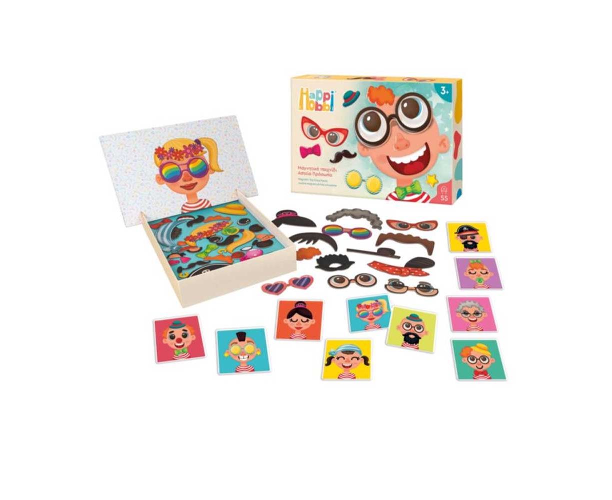 Ένα διασκεδαστικό μαγνητικό παιχνίδι με 55 μαγνήτες που θα κάνει τα παιδιά να γελάσουν πολύ με τα αστεία πρόσωπα που θα δημιουργήσουν. Το σετ βοηθά τα παιδιά να εξοικειωθούν με τα ποικίλα ανθρώπινα χαρακτηριστικά και αξεσουάρ και να νιώσουν άνετα με τη διαφορετικότητα των προσώπων.