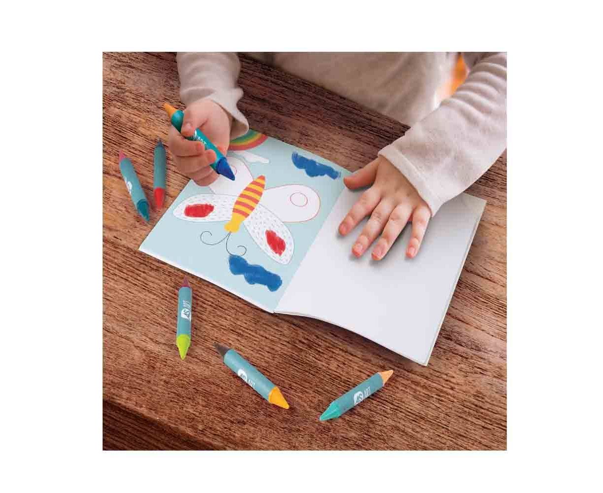 Εκπαιδευτικό σετ ζωγραφικής, ιδανικό για πολύ μικρά παιδιά και για την πρώτη τους επαφή με κηρομπογιές. Το παιδί μαθαίνει βήμα - βήμα να εκφράζεται μέσα από τη χρήση των κηρομπογιών, απεικονίζοντας όμορφα σχέδια από την καθημερινή ζωή. Μαθαίνει τα χρώματα, καθώς το σετ περιλαμβάνει 8 διπλές κηρομπογίες σε 16 διαφορετικά χρώματα και πειραματίζεται με αυτά χρωματίζοντας τις προτυπωμένες εικόνες.