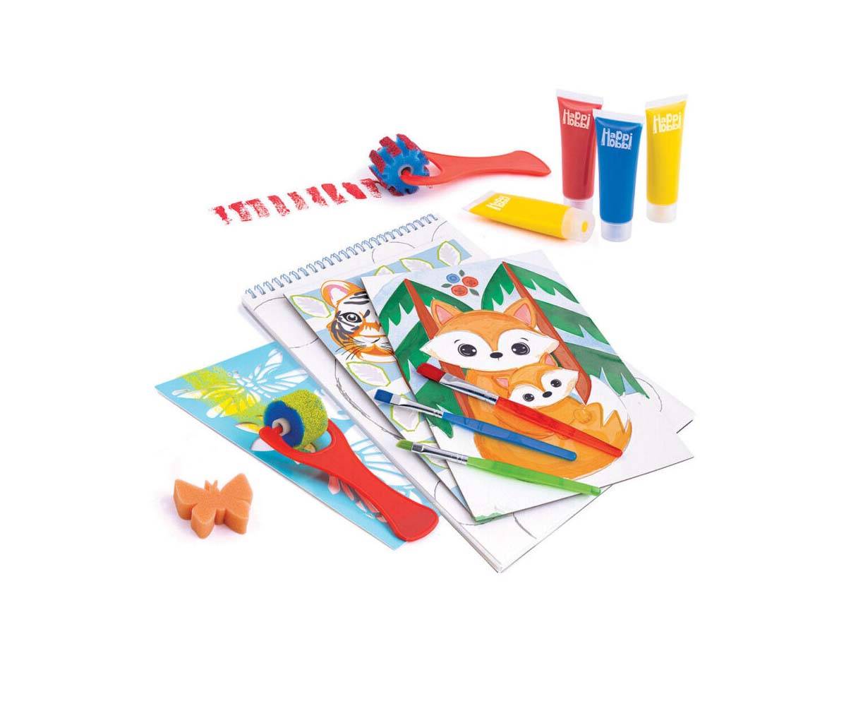 Ο HappiHobbi Εργαστήριο Ζωγραφικής Junior είναι το ιδανικό σετ για να γνωρίσει το παιδί την τέχνη της ζωγραφικής και να εξοικειωθεί με τη χρήση πινέλων, χρωμάτων, stencils και άλλων αξεσουάρ από μικρή ηλικία. Χρωματίστε έτοιμα σχέδια από τις προτυπωμένες σελίδες του μπλοκ που περιλαμβάνεται, ακολουθώντας τις οδηγίες του εικονογραφημένου οδηγού, αλλά και δημιουργήστε τα δικά του πρώτα έργα τέχνης με σχέδια βγαλμένα από τη φαντασία του.