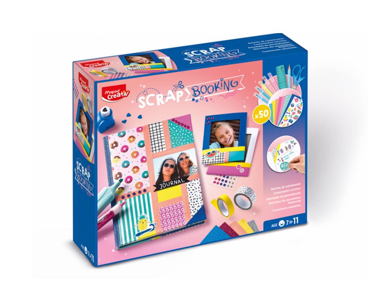 Ένα πλήρες δημιουργικό κουτί! Τα παιδιά μπορούν να διακοσμήσουν ένα σημειωματάριο-λεύκωμα και δύο κορνίζες φωτογραφιών με διάφορα υλικά που περιέχονται στην συσκευασία. Με περισσότερα από 50 αξεσουάρ τα παιδιά μπορούν να κολλήσουν, να κόψουν, να ζωγραφίσουν, να διακοσμήσουν...Είναι ένα ιδανικό παιχνίδι για την ανάπτυξη της δημιουργικότητας. Χαρακτηριστικά: Το σετ περιλαμβάνει 1 λευκό σημειωματάριο-λεύκωμα για να το διακοσμήσετε, 2 κορνίζες φωτογραφιών από χαρτόνι για να τις διακοσμήσετε, 24 χαρτιά Α5 με σχέδια,1 χαρτί Α5 λευκό, 4 φύλλα με αυτοκόλλητα (+200 αυτοκόλλητα), 1 στένσιλ με 4 σχέδια, 5 σελοτέιπ με σχέδια, 1 φύλλο με 3D στρας, 6 φύλλα από ψηφιδωτά αυτοκόλλητα, 1 μαύρο μαρκαδόρο, 5 μαρκαδόρους παστέλ χρώματα, 4 υπογραμμιστές παστελ χρώματα, 1 περφορατέρ, 3 σωληνάρια κόλλας με glitter, 1 μολύβι παστέλ, ψαλίδι και 1 χάρακα.