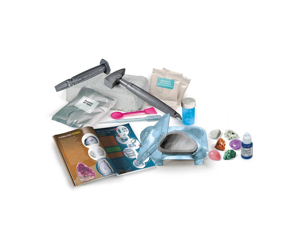 Ανακάλυψε και δημιούργησε τα δικά σου εντυπωσιακά πετρώματα. Μέσα από τις πέτρες ανακαλύπτεις ορυκτά! Ένα διασκεδαστικό και χρήσιμο σετ με το οποίο μπορείτε να εξοικειωθείτε με τον συναρπαστικό κόσμο των ορυκτών λίθων.