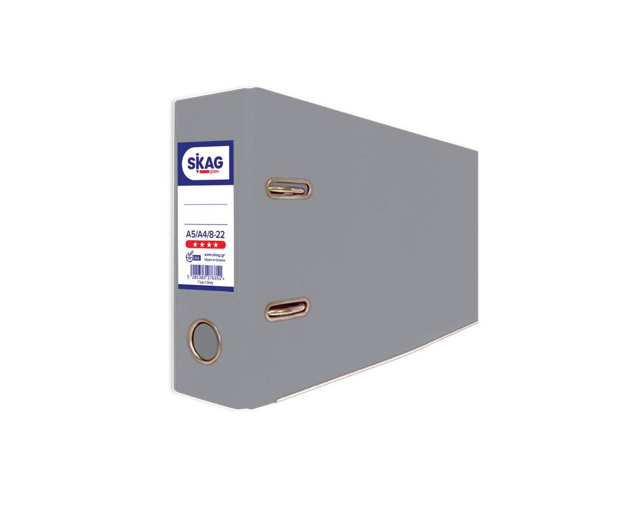 Στη ράχη του υπάρχει θήκη με ετικέτα διπλής όψης για αναγραφή περιεχομένων και μεταλλικός κρίκος για την εύκολη αφαίρεσή του από το ράφι.