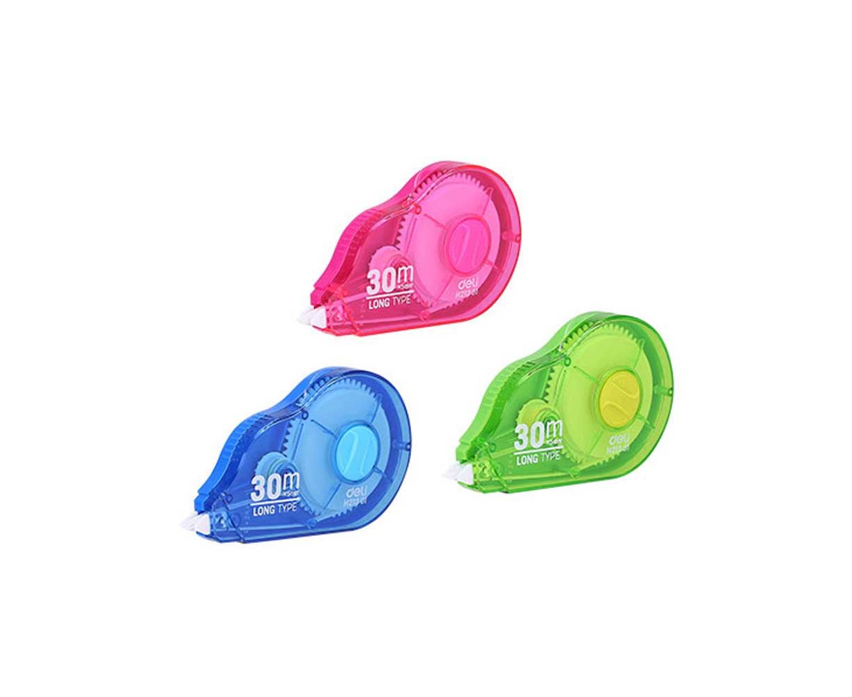 Διορθωτική ταινία Deli σε διάφορα χρώματα. Εργονομική σχεδίαση για άνεση στη χρήση. Ταινία μεγάλης αντοχής και καλυπτικότητας.