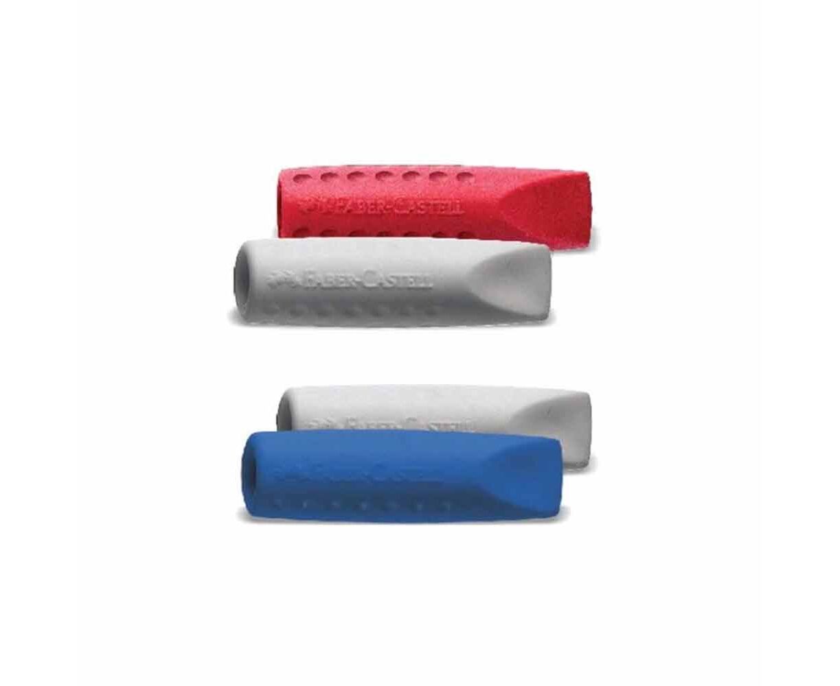 Η γόμα GRIP Eraser Cap -προσαρμοσμένη στην κάτω άκρη για να δώσει μήκος στο μολύβι ή μπροστά για να προστατεύει τη μύτη, είναι πάντα δίπλα σας όταν την χρειάζεστε.Διαθέτει την ίδια υψηλή ποιότητα με όλες τις γόμες Faber-Castell και φυσικά δεν περιέχει PVC.Διατίθεται σε τρία χρώματα (γκρι, φούξια και μπλε).Μπορεί να τοποθετηθεί στο κάτω μέρος για να επιμηκύνει το μολύβι ή στο μπροστινό για να προστατεύσει τη μύτηΔιάφορα χρώματα γόμες-καπάκια σε σακουλάκι.