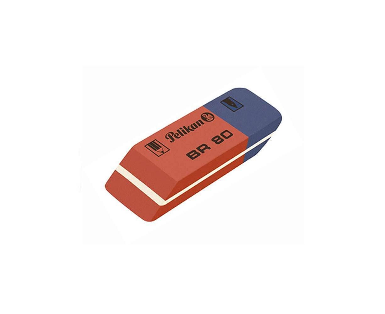 Η Γόμα BR 80 της Pelikan έχει μία πλευρά για να σβήνει μολύβι και μια πλευρά για μελάνι, στυλό διαρκείας και πολλά άλλα. Κατάλληλη για όλες τις επιφάνειες. 2/3 για μολύβι και 1/3 για μελάνι, στυλό, εκτύπωση. Μεικτή γόμα από συνθετικό καουτσούκ για τέλεια αποτελέσματα χωρίς μουτζούρες.