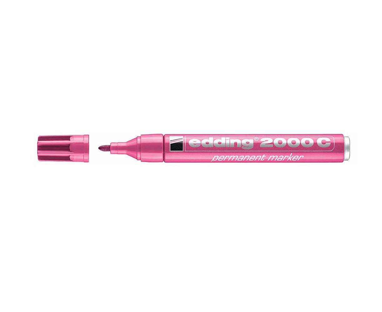 Ο edding 2000C είναι ο ανεξίτηλος μαρκαδόρος για μόνιμη γραφή και επισημάνσεις σε σχεδόν όλες τις επιφάνειες. Είτε πρόκειται για χαρτόνι, μέταλλο, πλαστικό και γυάλινα δοχεία. Διαθέσιμος σε 10 χρώματα μαύρο, κόκκινο, μπλε, πράσινο, κίτρινο, πορτοκαλί, καφέ, βιολέ, ροζ και γαλάζιο. Το μελάνι του στεγνώνει γρήγορα, είναι αδιάβροχο, χαμηλής οσμής με αντοχή στο φως και στη τριβή. Είναι Επαναγεμιζόμενος, με μεταλλικό πλαίσιο και αεριζόμενο καπάκι. Η μύτη του είναι στρογγυλή με πάχος γραφής από 1,5 έως 3 χιλιοστά.