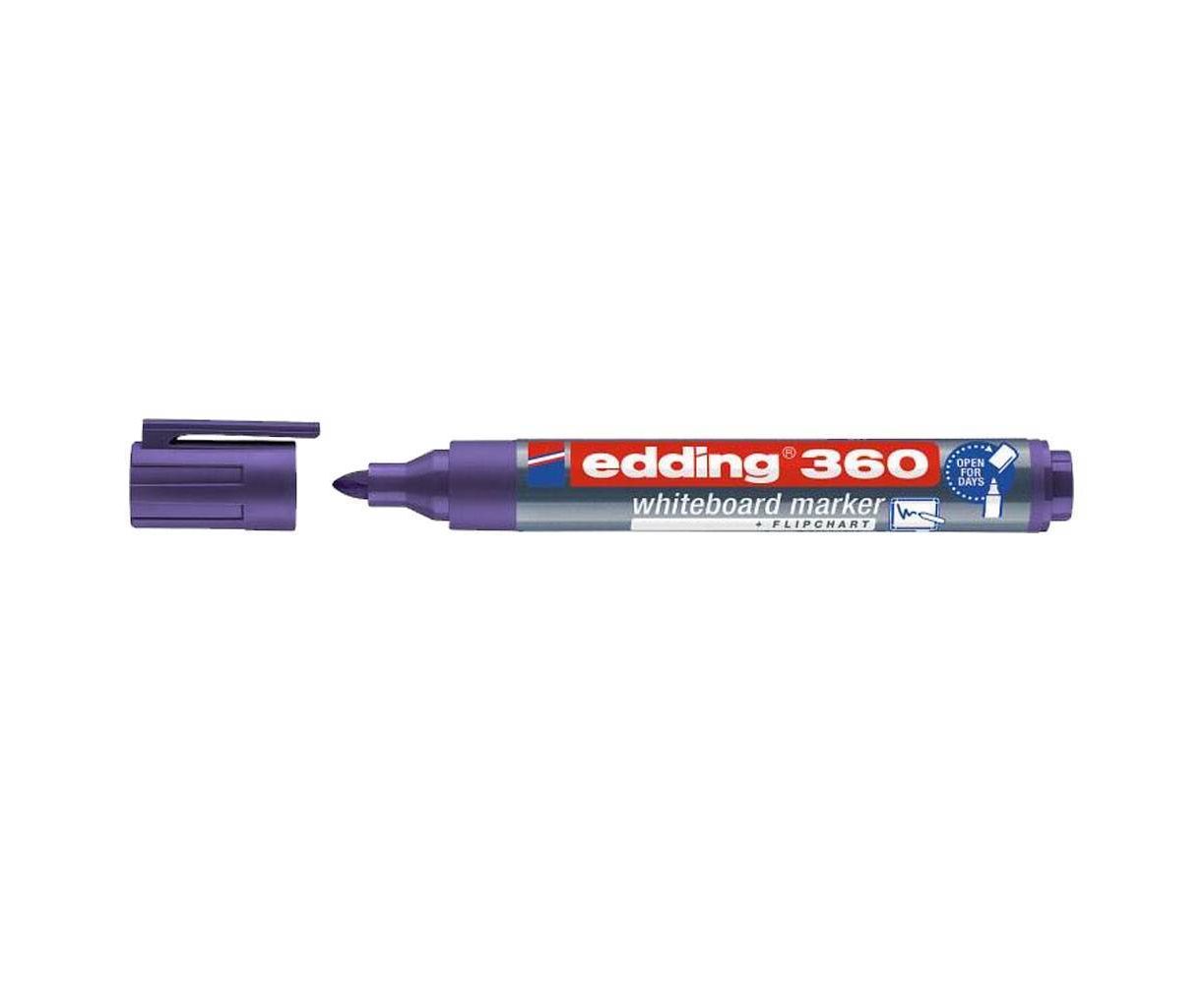 Ο edding 360 είναι μαρκαδόρος κατάλληλος για γραφή και επισήμανση σε λευκούς πίνακες από μελαμίνη, γυαλί και σμάλτο. Το μελάνι του είναι ανθεκτικό στο φως, στεγνώνει γρήγορα, καθαρίζει εύκολα με σφουγγάρι πίνακος και είναι ουδέτερης οσμής χωρίς προσθήκη οξικού βουτιλίου. Διαθέτει τεχνολογία cap off που επιτρέπει να αφήσετε το μαρκαδόρο ανοιχτό για μερικές μέρες δίχως να στεγνώσει. Το καπάκι του είναι μη αεριζόμενο και η μύτη του είναι στρογγυλή με πάχος γραφής από 1,5 έως 3 χιλιοστά.