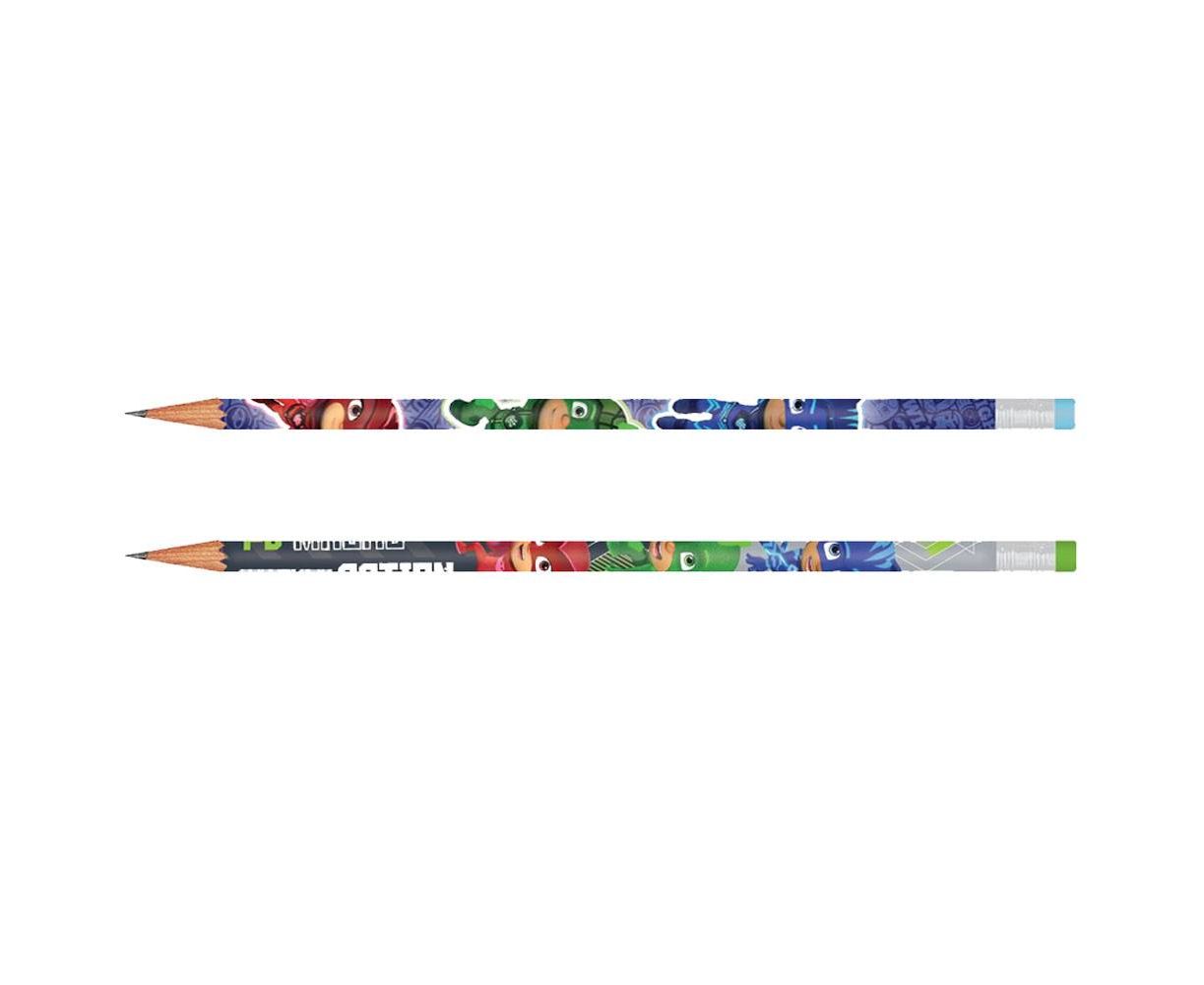 Μολύβι ξύλινο με γόμα στην άκρη του, τυπωμένο με τα χρώματα και σχέδια Pj Masks. Διατίθεται σε δύο διαφορετικά σχέδια.