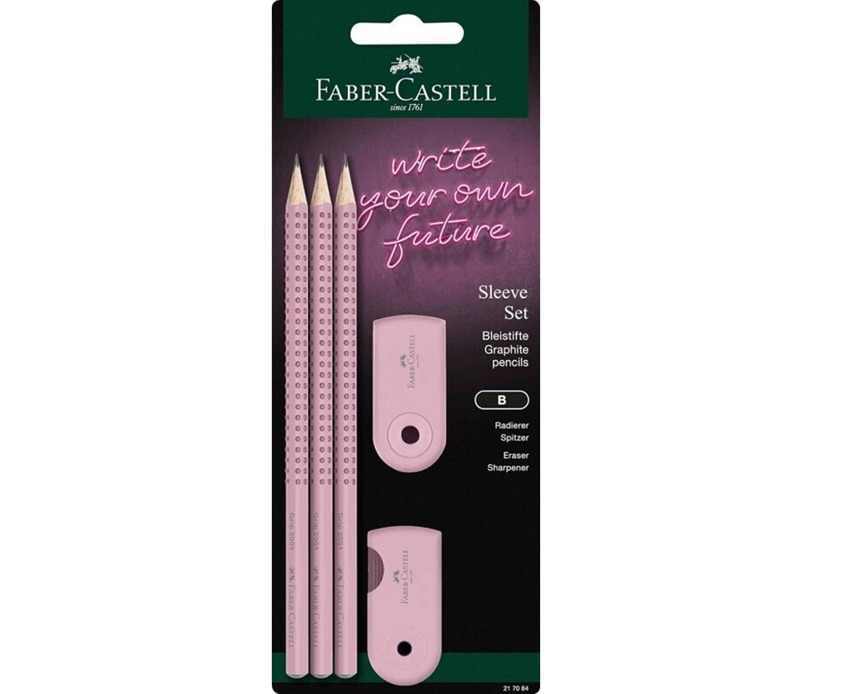 Σετ Faber Castell Grip 2001 3 Μολύβια 1 Γόμα 1 Ξύστρα Ροζ