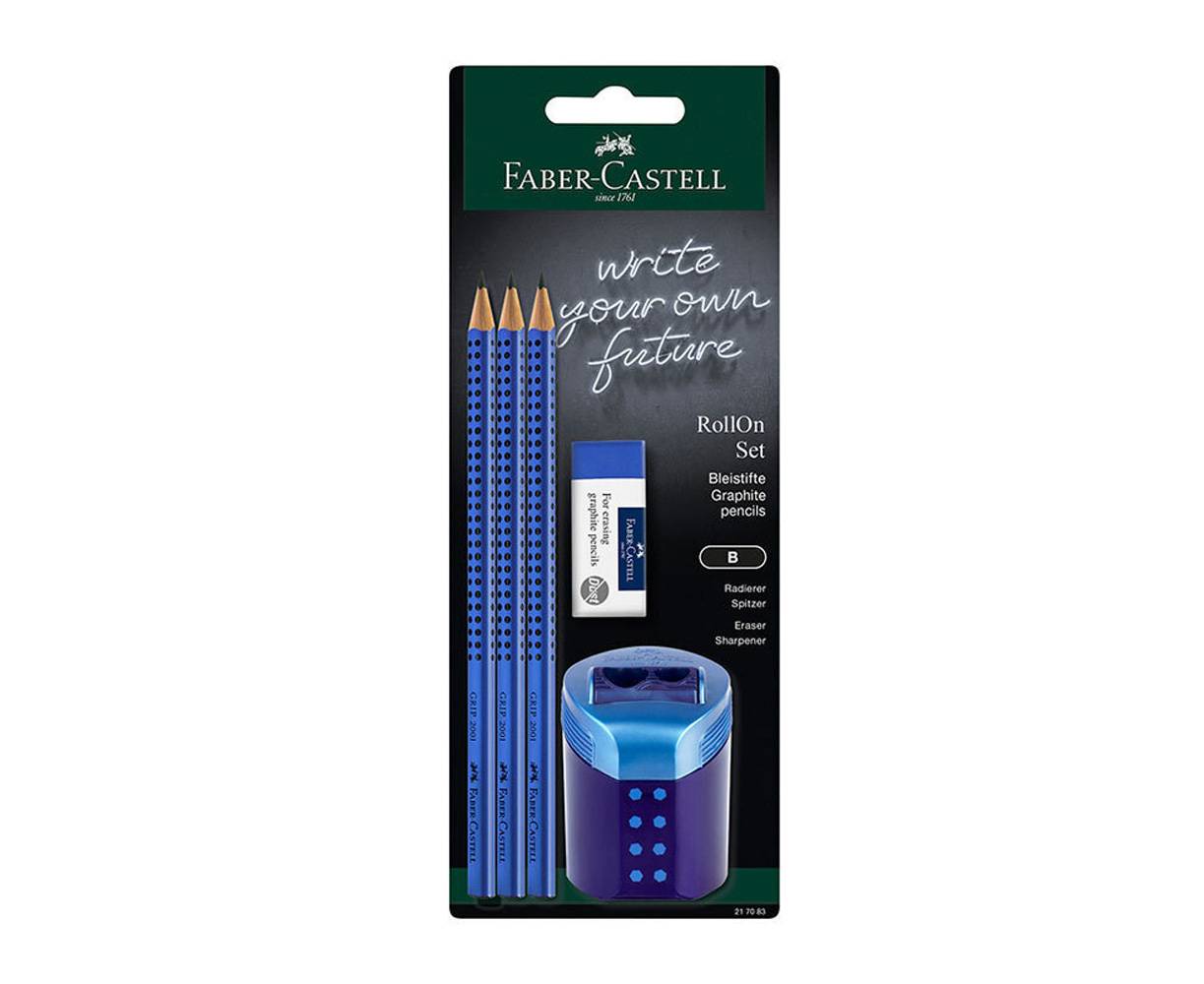Σετ Faber Castell Roll On 3 Μολύβια 1 Γόμα 1 Ξύστρα Μπλε