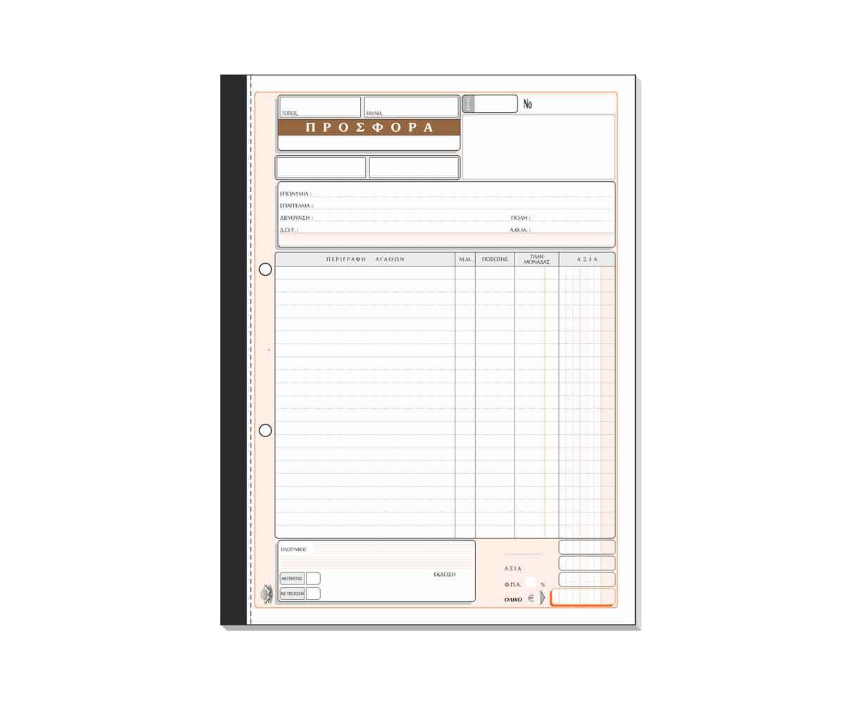 Έντυπο καταγραφής προσφορών με στοιχεία προϊόντων, παράδοσης , πληρωμής κτλ