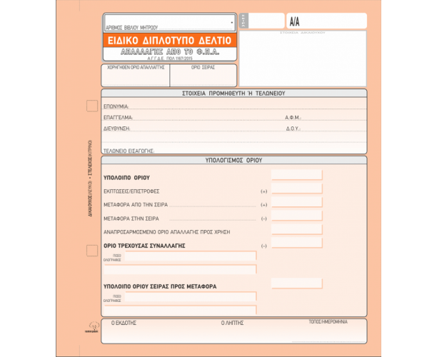 Ειδικό Δελτίο Απαλλαγής Φ.Π.Α. 395 50x2 19x20cm