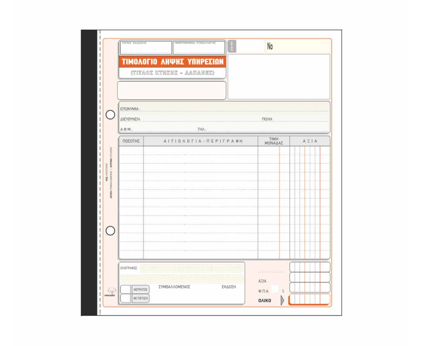 Τιμολόγιο Λήψης Υπηρεσιών 284 50X3 19X20cm